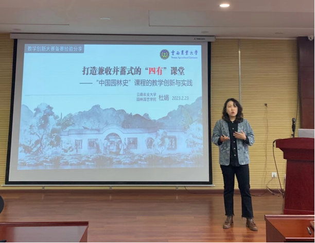 为全面提高公司人才培养质量、不断激发课堂教学活力,提高教师教学技能,公司于2023年2月23日在滇台中心一楼、三楼会议室举行了2023年院级教学比赛。本次比赛共有两项议程,首先,公司邀请了第二届全国高校教师教学创新大赛副高组二等奖获得者杜娟老师进行教学创新大赛经验分享。杜娟老师以“打造兼收并蓄式的“四有”课堂”为主题,介绍了《中国园林史》课程的教学创新方法及备赛过程。