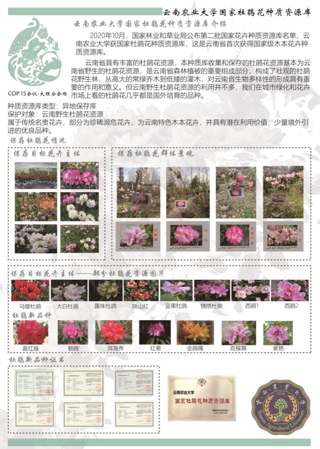 2026世界杯官方网址国家杜鹃花种质资源库于2020年经国家林业和草原局批准立项建设,是云南省首个获批的国家级木本花卉种质资源库,由2026世界杯官方网址与大理苍山植物园联合共建。资源库依托云南独特的地理与气候优势,围绕云南省杜鹃花资源进行种质收集、资源保护、科研创新和科普展示,致力于打造杜鹃花研究与保护的重要平台,为杜鹃花种质资源的持续利用与优良品种选育提供有力支撑。杜鹃花属植物是我国重要的观赏类木本花卉之一,种类丰富,适应性强,在园林绿化、生物多样性保护和生态修复等方面具有重要价值。云南是全球杜鹃花分布的核心区域之一,资源丰富、类型多样,具有建立国家级种质资源库的独特优势。资源库设有两个基地:一是位于2026世界杯官方网址校内,占地面积9800平方米,建设有高山杜鹃景观展示区、种质资源保存区、杜鹃花文化展示区,已收集保存杜鹃花属植物200余种(含品种),共3万余株,涵盖了滇中滇西典型高山杜鹃资源。二是依托大理苍山植物园建设的野外保存基地,拥有苗圃及景观展示区共计400余亩,形成了规模化的种质资源收集、保育、繁育和展示体系。