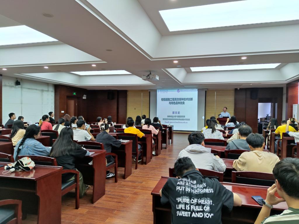郭文武教授围绕我国柑橘种业发展所面临的种性退化和无核优质品种缺乏,柑橘类植物普遍存在珠心胚干扰和杂交育种效率低两大问题,讲述了多倍体应用优势和特色、倍性与抗性/适应性和果实品质关系、柑橘育种技术迭代发展,重点分享了团队在柑橘细胞工程与遗传改良的学术成果和细胞工程技术定向改良助力无核优质新品种培育的产业价值。全场报告会座无虚席,师生们认真聆听,提问交流积极踊跃,纷纷表示通过本次学习进一步加深了对实现我国种源自主可控和种业科技自立自强的理解。